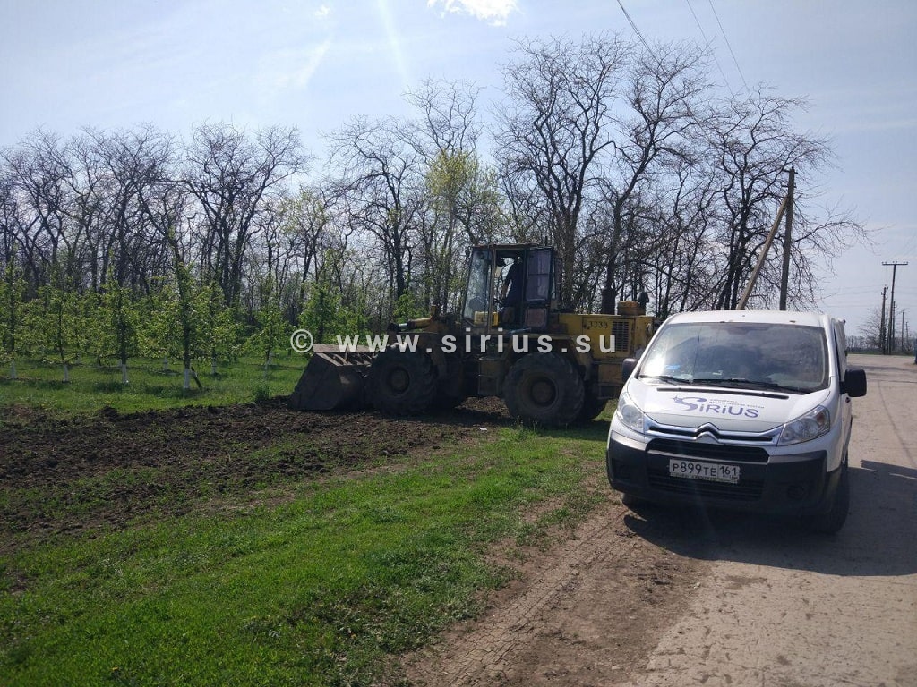 Впечатленные дорожными пейзажами, мы еще больше ахнули, когда попали на территорию заказчика. Техника стояла в саду, и все деревья вокруг цвели пышным цветом. Аромат стоял непередаваемый!